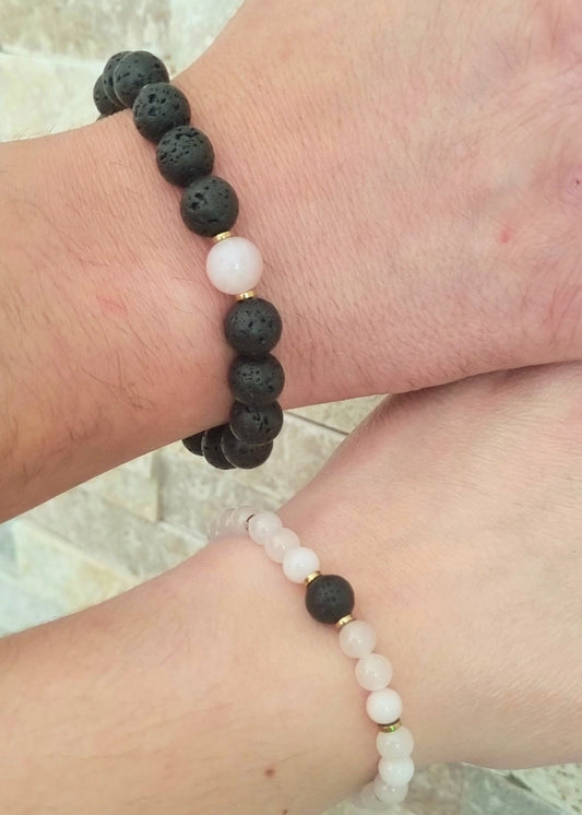 COURAGE-CONFIANCE-DOUCEUR Duo de bracelets pierre de lave et quartz rose