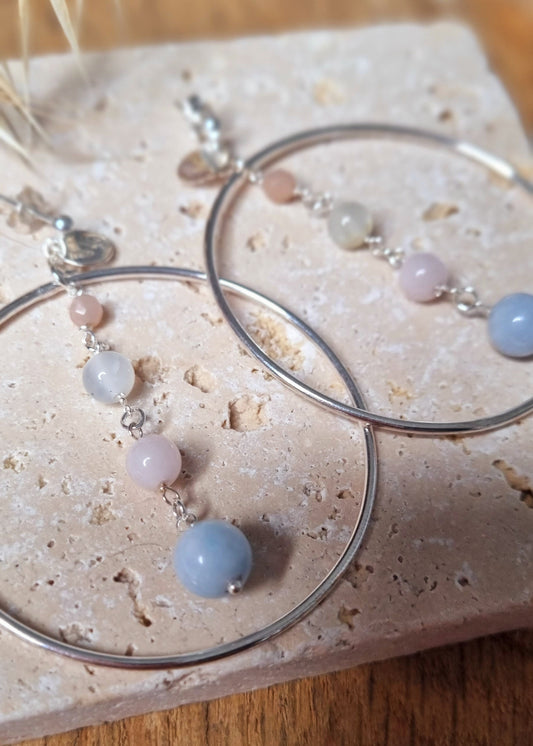 Boucles d'oreilles HARMONIE, argent 925 et pierres naturelles