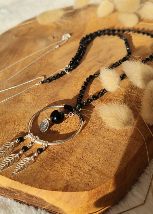 Sautoir Eclat d'Ombre - Spinelle Noire Argent 925 / Maloey