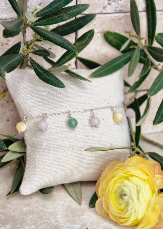 ENERGISANTE Bracelet en argent 925, quartz rose, aventurine verte et calcite jaune Collection "Les Intemporelles"