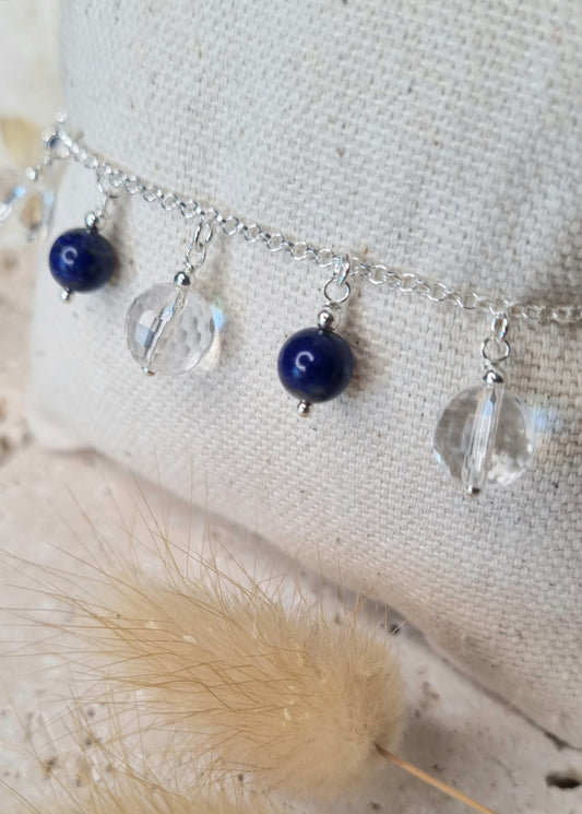 BIEN-ETRE Bracelet argent 925, cristal de roche et lapis-lazuli