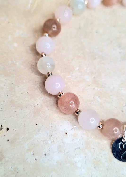FEMINITE Bracelet quartz rose, pierre de lune et argent 925.
