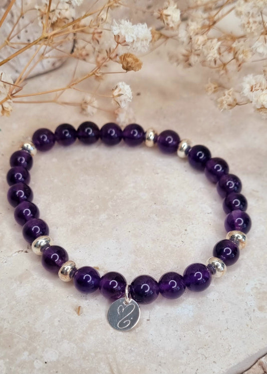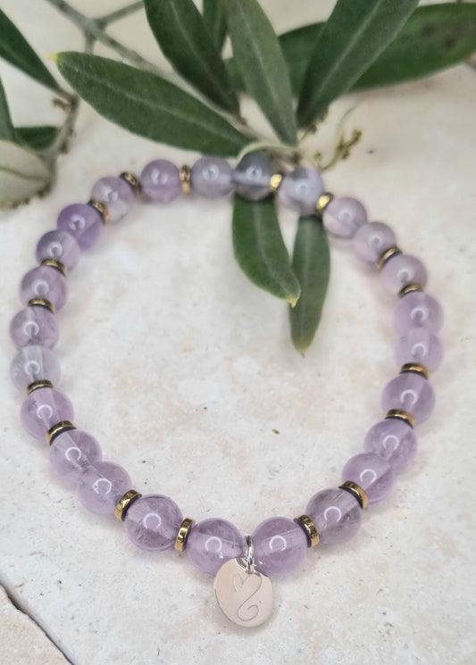 APAISANTE Bracelet améthyste lavande et hématite dorée