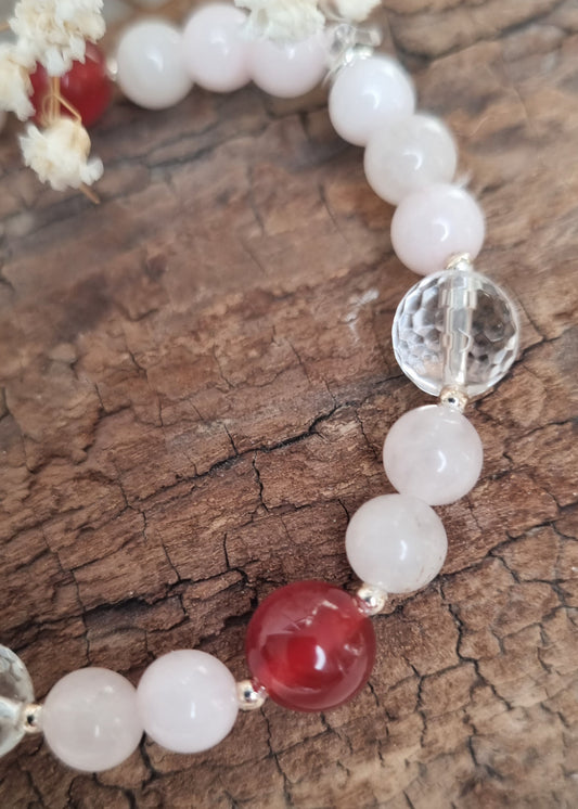 EPANOUIE Bracelet quartz rose, cornaline et cristal de roche.