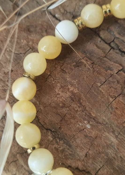 JOYEUSE Bracelet calcite jaune et hématite dorée