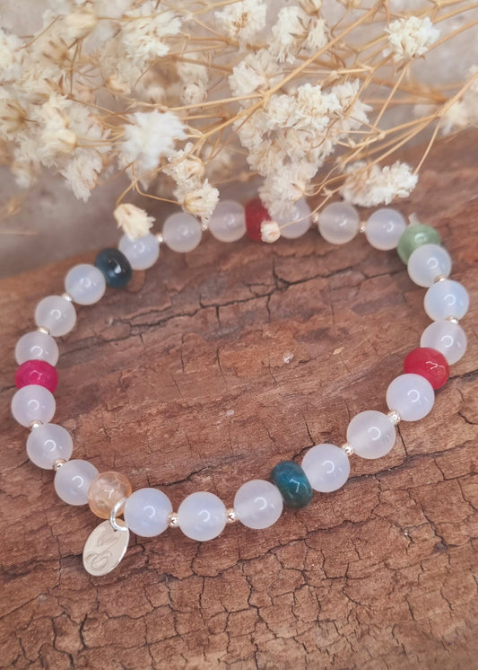 DELICATE Bracelet agate blanche, agate colorée et argent 925
