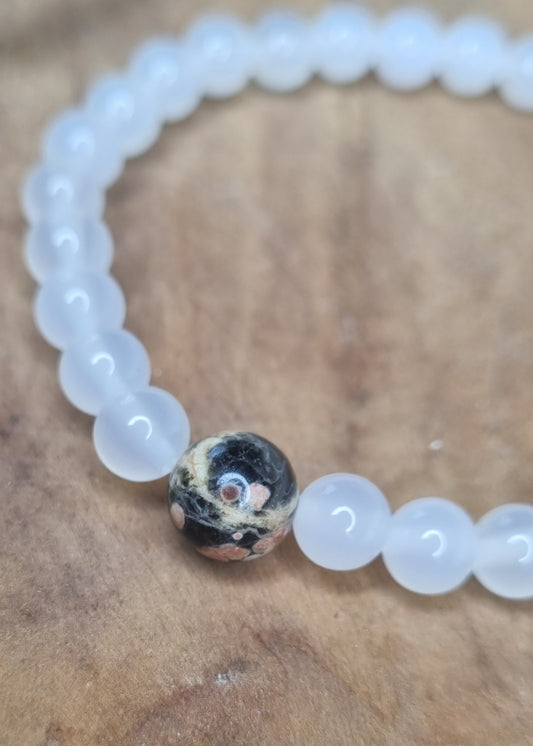 NATURELLE Bracelet agate blanche et obsidienne flocon de neige